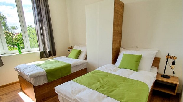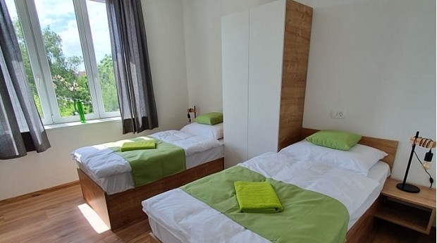 Das Hostel mit 50 Betten in Zwei- und Mehrbettzimmern liegt im Zentrum von Radovljica. Es befindet sich gleich neben dem Busbahnhof, unweit der Altstadt und des Bahnhofs.