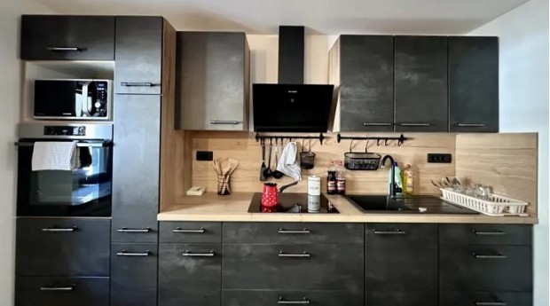 Neben den Zimmern und Badezimmern stehen den Gästen auch Gemeinschaftsräume und eine gut ausgestattete Küche mit Esszimmer zur Verfügung, in dem ein alter Bauernofen steht, der neben den hausgemachten Möbeln im Raum eine heimelige Atmosphäre und wohlige Wärme schafft.