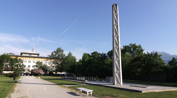 The memorial to the first Slovenian playwright, Anton Tomaž Linhart, is the work of a local sculptor.