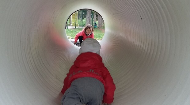 The Begunje public playground (location) is one of the local-moms’ favorites – why? because you can sit back at the adjacent cafe while your kiddo safely runs around in the entirely fenced-in playground, complete with slides, swings, and a sandbox. It’s a public playground, so you’re not obligated to go the cafe in order to use it. There’s a water fountain available, plenty of parking, and a cafe bathroom (but you’ll still have to get creative to change a diaper). The playground is right beside the soccer field, so it gets busy on game days. Dogs aren’t allowed within the playground, but you can still bring your dog along to the cafe.