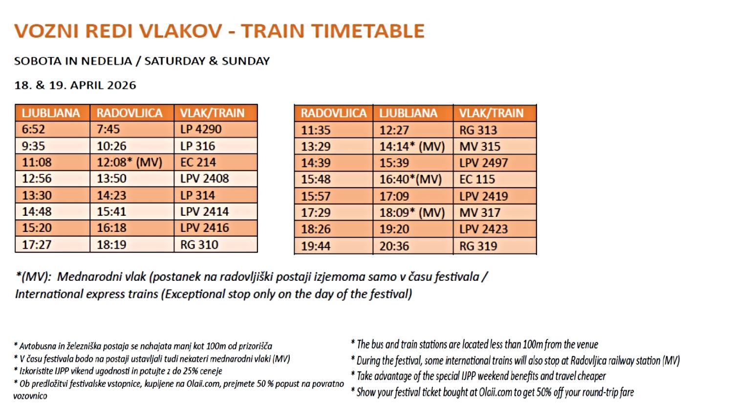 * During the festival, some international trains will also stop at Radovljica railway station.