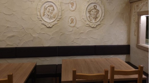 The menu features a wide range of pizzas cooked in a pizza oven, as well as burgers, salads, desserts and other dishes. Children are treated to a special surprise!