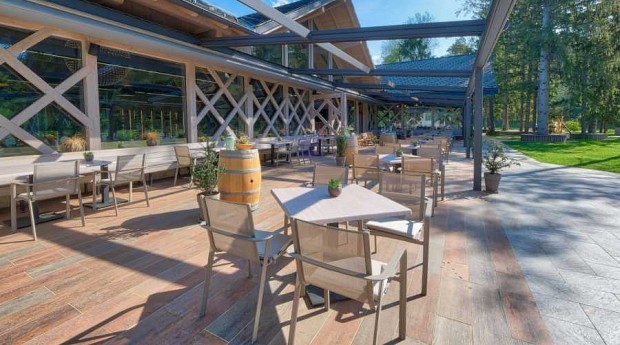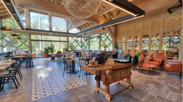 The restaurant can host up to 250 people, making it possible to organise conferences, team buildings or weddings. A music group will take care of a joyful atmosphere from a stage in the middle of a large terrace, where you can also sway around the dance floor.