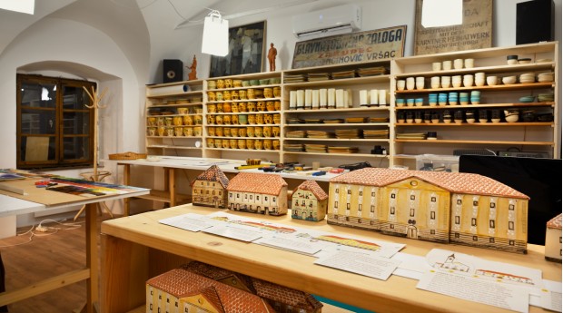 The owner and manager of Manufaktura is the acclaimed potter Urban Magušar, whose own pottery workshop is located in Magušar's House on the opposite side of the square. Although for now the majority of pottery will continue to be produced in the attic of Magušar's House, visitors will also be able to watch pottery items being made in Manufaktura where, from now on, the mini replicas of the houses in Radovljica's old town centre will be made, and in the future other pottery items too.