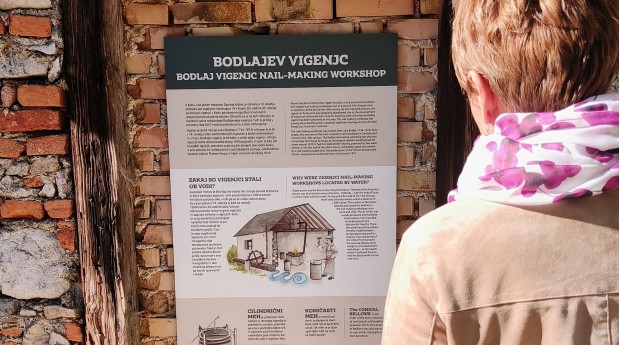 The project in Kropa included the design of a plan for the entire area, the renovation and supplementation of information boards around the village with digitised content, the preparation and presentation of a digital circular trail around Kropa, which encourages visitors to walk around the wider area of Kropa, the restoration and protection of the crumbling walls of the old distillery, and the planning of informative and interactive content in the Educational Park in Kotel. A booklet of tasks for children is also being created, together with the final implementation of an interactive family trail, which will connect the themed circular trail and the learning park into a family-friendly tourist product.