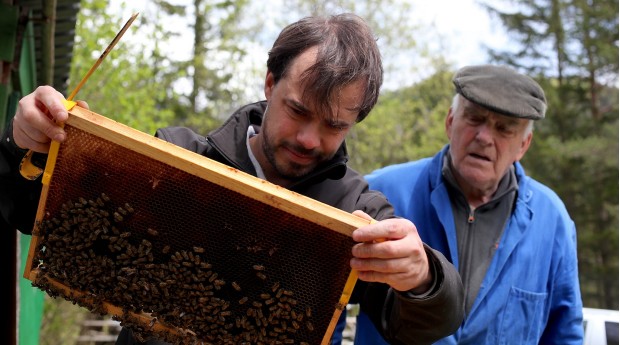 In the film titled 'Slovenia – A Land of Honey' (Slowenien Land des Honigs) the young beekeeper demonstrates traditional and modern methods of Slovenian beekeeping. Erik Luznar speaks about his own decision to become a professional beekeeper, learning about beekeeping from his father Janez and, above all, about his battle for the survival of his families of bees in the exceptionally cold and wet spring of 2019. In addition to Erik and Janez Luznar, other Sloveian beekeepers took part, together with the teacher of apiculture Brane Kozinc and Anja Bunderla, who paints beehive frontal panels.