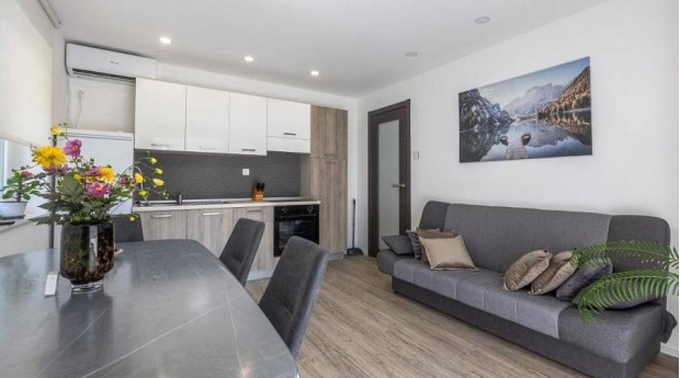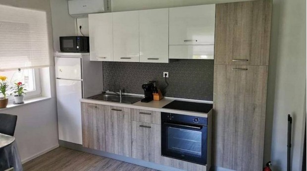 La cucina completamente attrezzata con zona giorno e tavola da pranzo per 6 persone, offre anche un divano letto, che può essere trasformato in un comodo letto supplementare con un materasso di 200 cm x 120 cm.