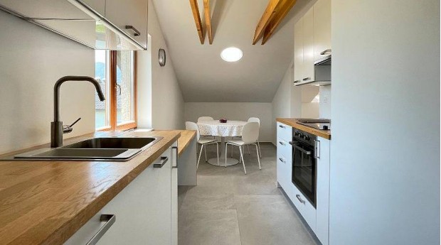 Prostoren družinski apartma je primeren za do 5 oseb in nudi čudovit pogled na gore. Idealen je za družine ali manjše skupine, ki si želijo mirnega oddiha v objemu narave.