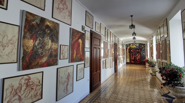 Ob notranjem atriju Bazilike Marije Pomagaj na Brezjah je v širokem hodniku samostana na ogled stalna razstava del akademskega slikarja Nikolaja Mašukova.